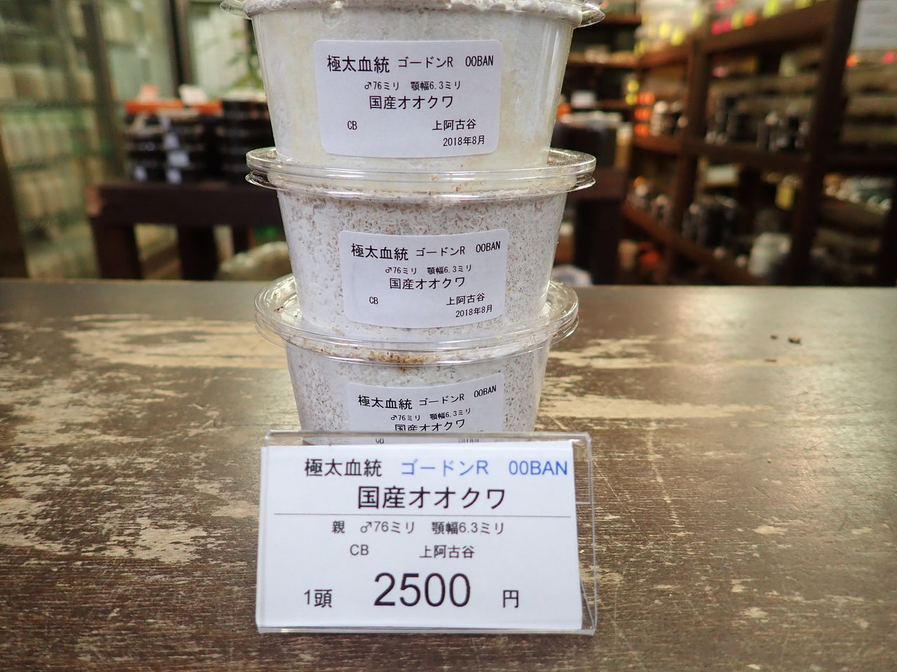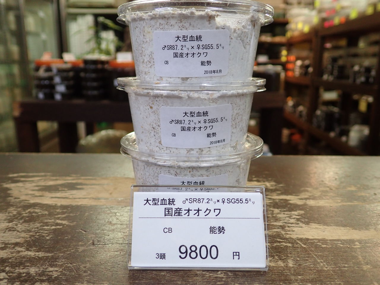 コクワの幼虫が16頭とれたということで、用品を購入するのに