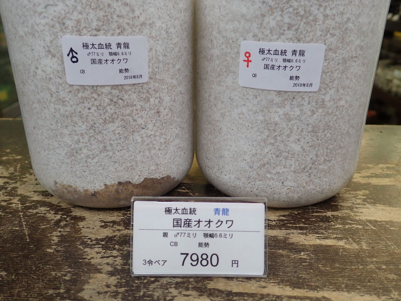 ♂73ミリ ♀47ミリペア 顎幅6.1 39800円