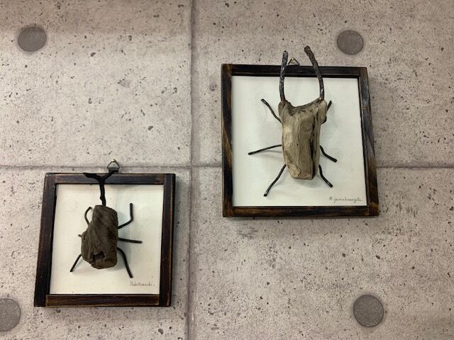 流木で制作されたカブトムシとクワガタ!